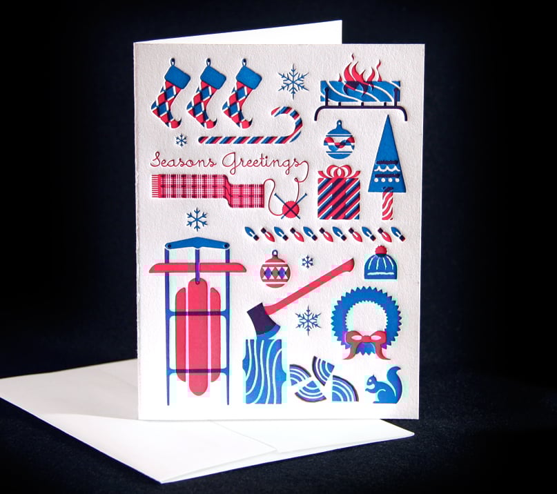 "Season's Greetings" is the perfect holiday greeting. This Letterpress card was designed by Michael Greenler and printed one-at-a-time by hand at Orchid Ink Press in Columbus, Ohio, USA.
